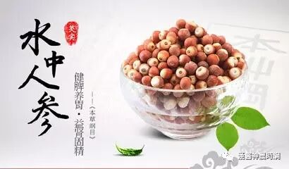 芡实,又名鸡头米,也被记载在《神农本草经》里,古药书中说它能固肾涩精,补脾止泻,止带,是“婴儿食之不老,老人食之延年”的粮菜佳品。它具有“补而不峻”、“防燥不腻”的特点。