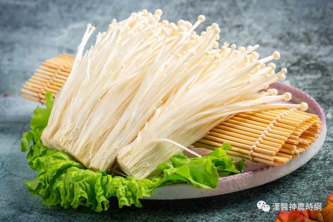7.金针菇营养成分十分丰富,如蛋白质、维生素B1、B2等,具有利湿热、宽胸、利尿、止血、下乳的功效,并且治产后乳汁不下,用金针菇炖瘦猪肉食用,极有功效。