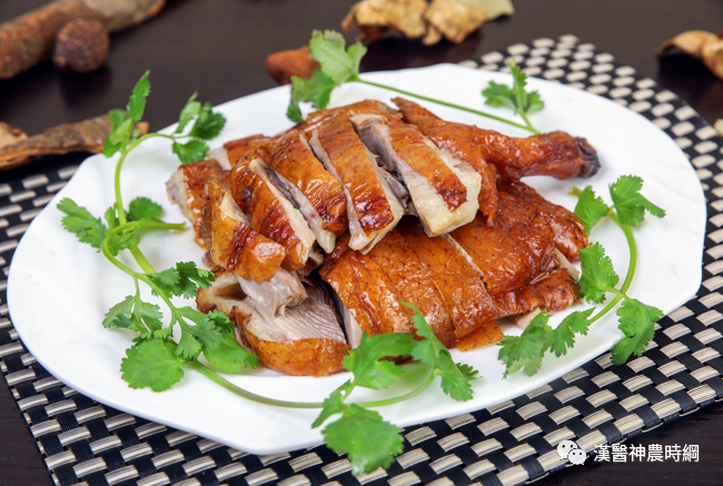 2. 公鸭肉性微寒,母鸡肉性微温。入药以老而白、白而骨乌者为佳。用老而肥大之鸭同海参炖食,具有很大的滋补功效,炖出的鸭汁,善补五脏之阴和虚痨之热。