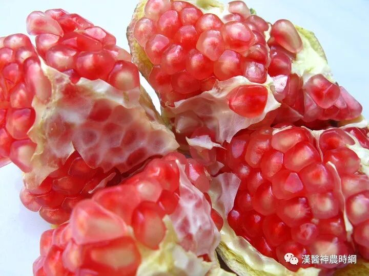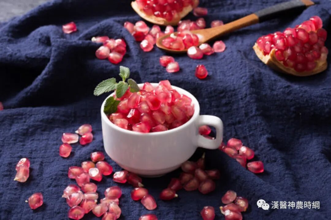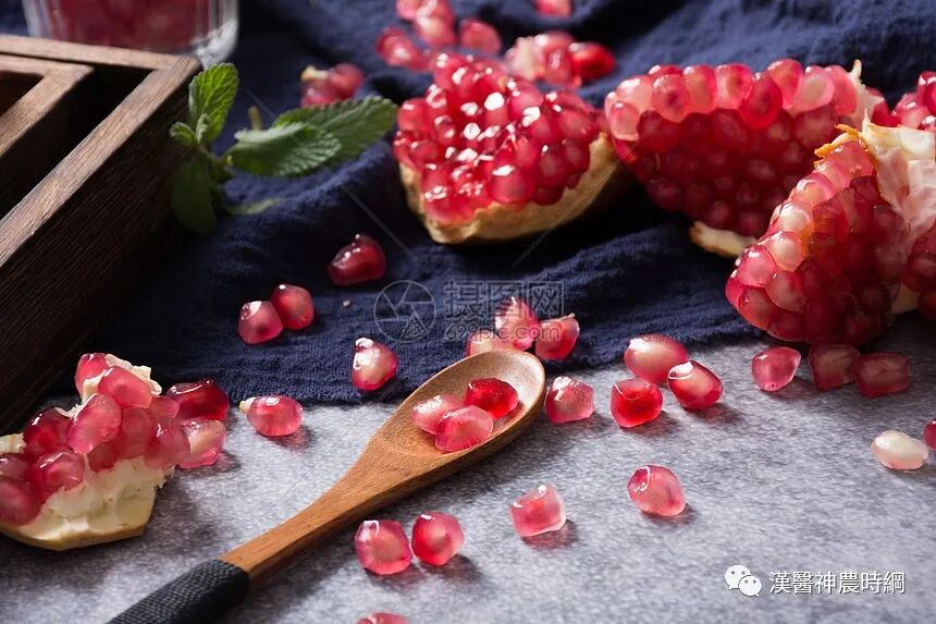 研究发现,石榴含大量的有机酸、糖类、蛋白质、脂肪、维生素以及钙、磷、钾等矿物质。中医认为,石榴具清热、解毒、平肝、补血、活血和止泻功效,适合黄疸性肝炎、哮喘和久泻的患者及经期过长的女性。