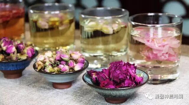 玫瑰花茶: 美容,舒解神经。玫瑰花:滋润养颜,护肤美容,活血,保护肝脏,消除疲劳,促进血液循环之功能。可治慢性胃炎及肝炎。适女性,小孩饮用。