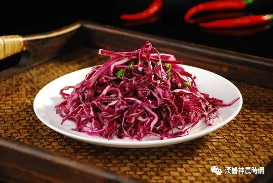 紫甘蓝不仅营养丰富,而且结球紧实,色泽艳丽,抗寒。耐热,产量高,耐贮运,是很受欢迎的一种蔬菜。在欧洲地区主要作为色拉菜或西餐配色用,可用于生食、汤食、炒食。紫甘蓝食用方法既可生食,也可炒食。但为了保持营养,以生食为好。如炒食的,要急火重油,煽炒后迅速起锅。