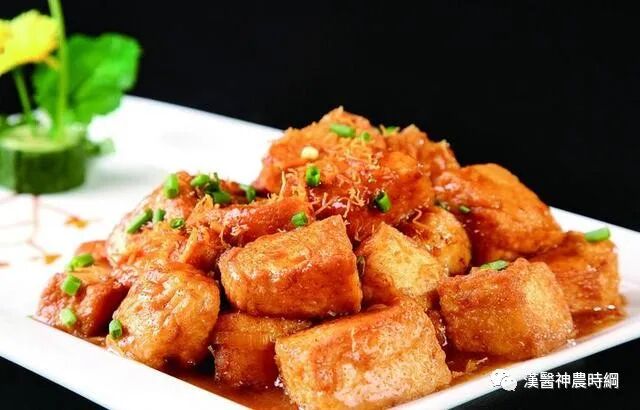 豆腐为补益清热养生食品,常食之,可补中益气、清热润燥、生津止渴、清洁肠胃,更适于热性体质、口臭口渴、肠胃不清、热病后调养者食用。现代医学证实,豆腐除有增加营养、帮助消化、增进食欲的功能外,对齿、骨骼的生长发育也颇有益,在造血功能中可增加血液中铁的含量;豆腐不含胆固醇,为高血压、高血脂、高胆固醇症及动脉硬化、冠心病患者的药膳佳肴。
