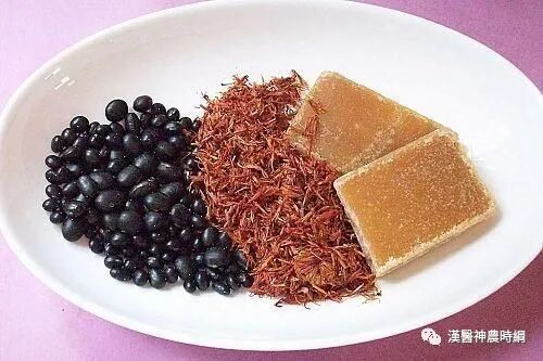 黑豆红花汤:黑豆30克,红花6克,水煎,取汁冲50克红糖温服,每日1次。