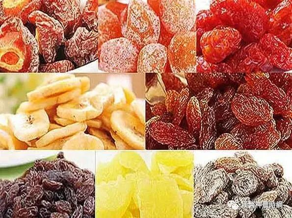 果脯蜜饯一般是用品质较差的水果,经过糖渍(一般要65%以上的糖溶液)而得,再添加一些色素,使外表晶莹剔透。果脯蜜饯的维生素C几乎损失殆尽,更糟糕的是其含糖量一般在80%以上,大量吃易引起超重肥胖。