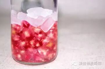 做法:将石榴连皮带籽捣碎取汁,生姜切薄片上火加水煮开,再把石榴汁倒入,煮沸后放茶叶,再煮片刻即可。