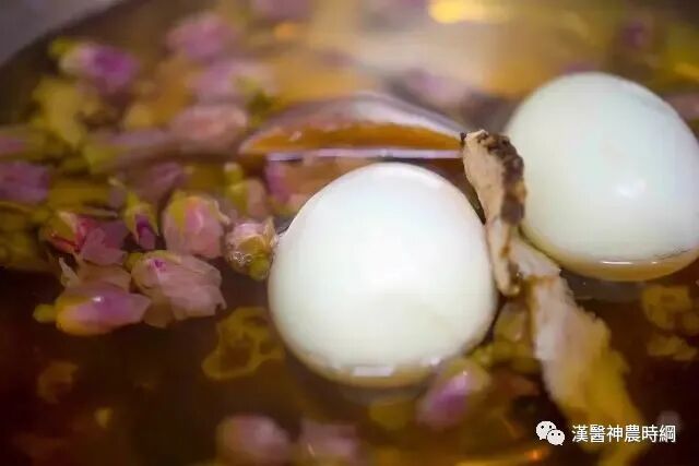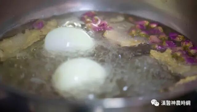 1、将煮熟的鸡蛋剥壳,连同当归,干玫瑰花一起下锅。