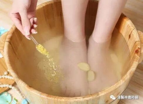 ●另外,浸泡时,要注意下列几点:准备一个大且深的水桶,水位能浸到小腿一半以上为原则;不能因桶小而斜放双脚,要能舒适平放于桶底,才不至于抽筋。浸泡时间约30分钟,若水凉了中间可加热水1~2次。