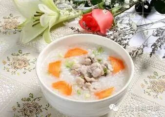 鲜羊肉250克,大米100克,葱、姜、食盐各适量。将羊肉洗净、切片,与大米、葱、姜、食盐,以常规方法熬粥,至羊肉熟烂。
