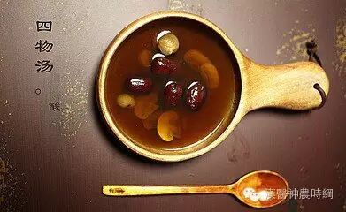 四物汤组成是当归、白芍、熟地、川穹,有补血活血的作用,补充月经时消耗的阴血。调经止痛、养血疏筋。滋润肌肤、防止老化。小秘诀亦可随意加入山药、百合、莲子、白果、红枣等。