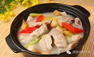 做法:取鲜山药500克,栗子50克,山药切块;猪肚1个用精盐反复搓洗数遍,切块,加生姜、料酒、精盐、清水适量,煲至八成熟;加入山药、栗子煲熟即可。