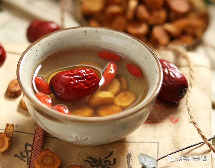黄芪3—5片,红枣3粒,放入到杯子里面,加热水冲泡即可。