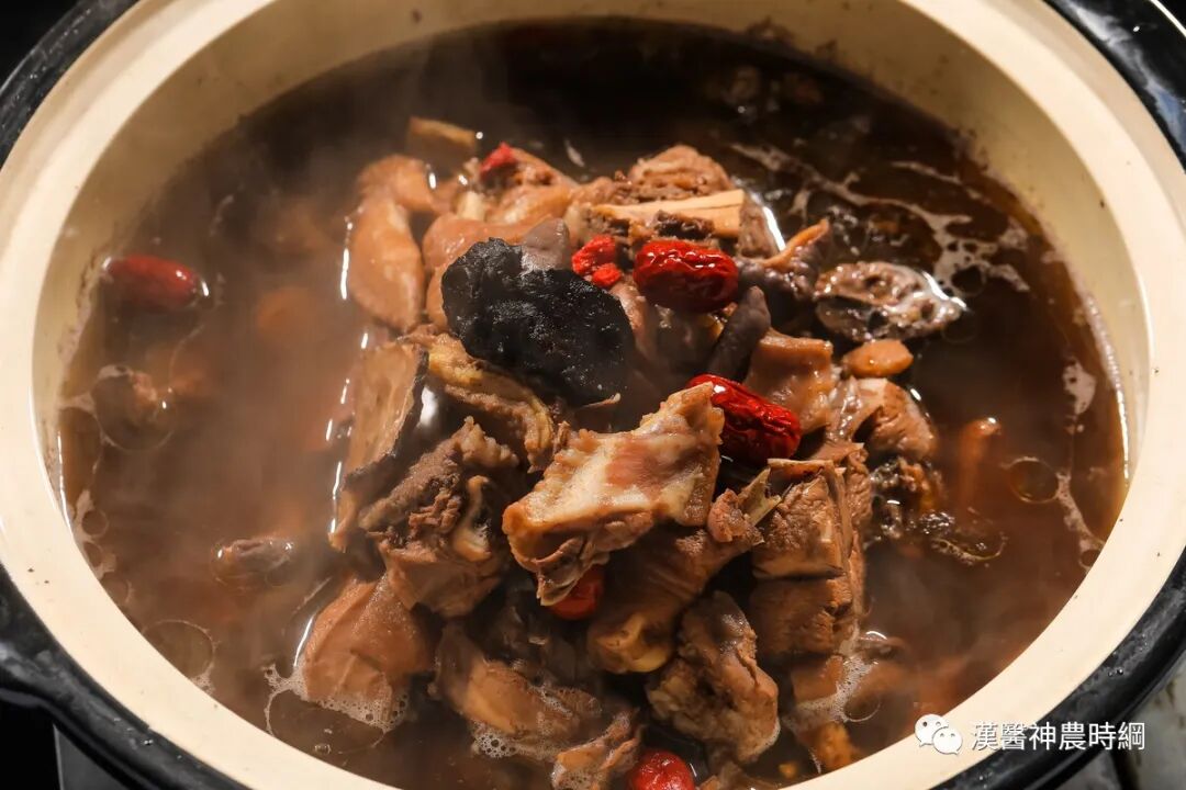 制作:①乌鸡杀洗干净,去毛、去内脏、去肥膏。淮山、杞子和陈皮浸透,洗干净。丹参和当参洗干净,切片。