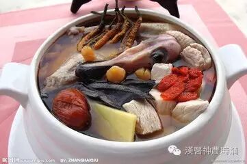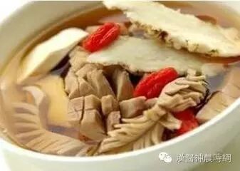 功效:本汤健脾开胃、调补气血。如果心悸气短、食欲不振、心前区疼痛不适,可用本汤作食疗。妇女月经量少而色淡,质稀薄,经后小腹隐隐作痛,精神疲倦乏力,面色苍白,亦可用本汤作食疗。孕妇不宜饮用。材料:淮山、杞子、丹参各四钱,当参一两,陈皮一片,乌鸡一只,盐少许。
