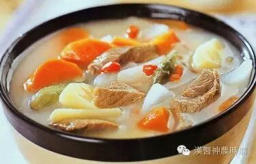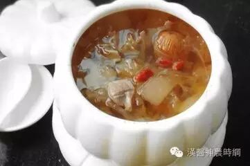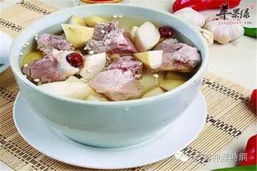 作法:1 将参须、枸杞先泡水5分钟。2 等锅热后将羊肉放入锅中,再加姜干煸3分钟,使羊肉中的污水、油脂渗出来。然后放入热水中氽烫,待羊肉煮熟后捞起。3 将羊肉切块,和参须、枸杞、姜、绍兴酒一起放入锅中以小火焖煮20分钟,煮到羊肉熟烂。4 再将羊肉等材料移入炖盅,放入蒸笼或锅中,以中小火炖煮2小时,起锅前加盐调味即可。55、川贝母蜜枣瘦肉汤。