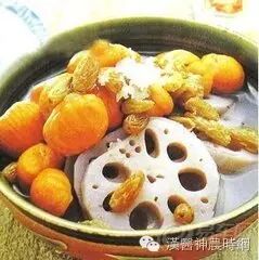 功效:本汤宁心安神、养血润肤、安睡、滋养阴血,使肌肤保持润泽弹性。若经常失眠、心跳、心惊、食欲不振、皮肤干噪、男子梦遗、早泄、妇女白带多、月经失调、大便稀溏,可用本汤作食疗。材料:龙眼肉三钱,莲子肉一两,鸡蛋两只,生姜两片,南枣四枚,盐少许。制作:①鸡蛋蒸熟,去壳洗干净。龙眼肉、莲子肉、生姜和南枣洗干净。莲子肉去心,保留莲子衣;生姜去皮,切两片;南枣去核。②瓦煲放清水,用猛火煲至水滚,后放入材料,改用中火煲两小时,加盐少许调味,即可饮汤吃莲子、鸡蛋。