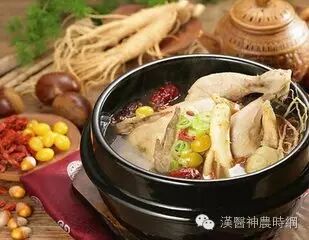 原料:三七15克、红参10克、当归20克、鸡肉150克、生姜2片、红枣4颗