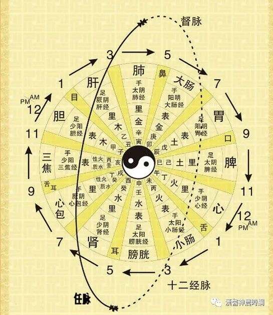 中医哲学主张天人合一,认为人是大自然的组成部分,人的生活习惯应该符合自然规律。把人的脏腑在12个时辰中的兴衰联系起来看,环环相扣,十分有序: