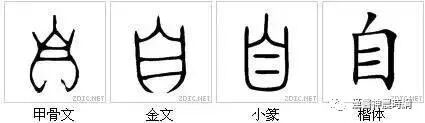 在甲骨文中“自己”和“自然”中的“自”字,画的就是鼻子,上面短短的一竖是鼻梁,两边弯弯的曲线,勾勒出鼻子的轮廓,中间是鼻纹,两边是鼻翼,下面是鼻孔,这是一个完整的鼻子。“自”的本义就是鼻子。