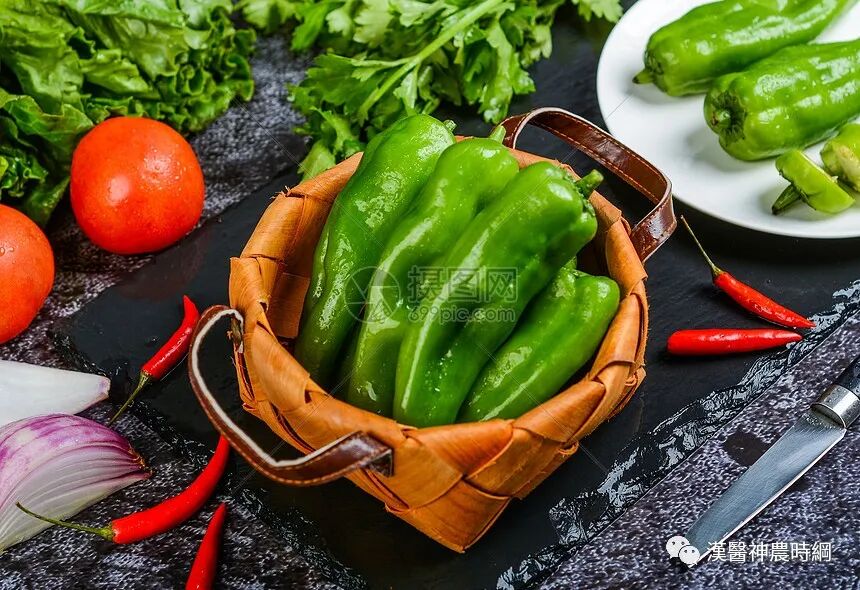 它还可以防治坏血病,对牙龈出血、贫血、血管脆弱有辅助治疗作用。一般人都会感觉到,吃了带有辛味的青椒之后,会心跳动加速、皮肤血管扩张,令人觉得热乎乎的,所以中医对它的看法和辣椒一样,有温中下气、散寒除湿的说法。