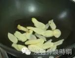 先以其他植物油爆香姜片(麻油爆太久会产生苦味)