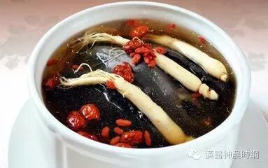 乌骨鸡、黄芪、枸杞各20克,当归、党参各10克,麦冬15克,大枣10个