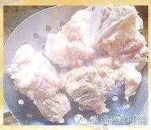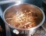 龙骨捞出放凉一些冲洗干净,放入锅内。