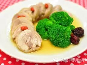 放山古早鸡去骨鸡腿1片盐1/2小匙青花菜(盘饰)适量冰水或冰块(冷却用)适量陈年绍兴酒1杯水4杯当归1片黄耆6片红枣2粒黑枣1粒枸杞1小撮盐(最终调味用)适量