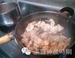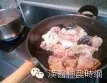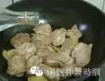 再加入麻油,等油热时放入鸡腿拌炒至变色有香味