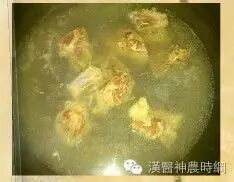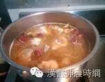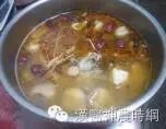 将水煮滚后,放入翅小腿、中药包、米酒大火煮滚后转中小火(就是水有微滚的状态)慢炖1小时即可。