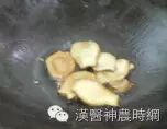 起(麻油)油锅→姜片中小火爆香