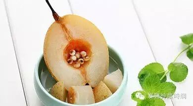 2,洋参川贝梨:雪梨1个,西洋参、川贝各3g。将梨削去带柄的部分,挖去梨核,放入西洋参、川贝,盖上带柄的梨,用牙签插定,加水、冰糖适量,放碗中蒸熟。分二次食。