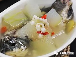 材料:生鱼500克,冬瓜600克,赤小豆60克,蜜枣20克,生姜2片,食盐适量。