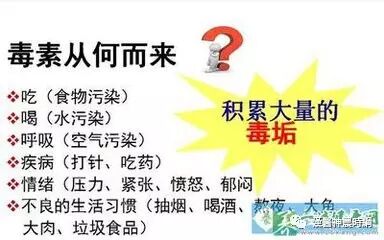 关于毒的概念,有些人理解为中医里的“毒”,主要是指“风、寒、暑、湿、燥、火”六大“病邪”。而我个人更愿意把“毒”理解为所有对人体健康有不良影响的物质,例如:致癌物质亚硝胺、笨并芘、杂环胺,重金属,导致人体衰老的自由基,食物中的农药残留,环境污染带来的废气、废水、废渣,化学药品,过量的食品添加剂,病毒、有害微生物及毒素等等。我们想要减少毒素对身体的伤害,要从两个方面入手,一方面是减少毒素摄入,另一方面是注意日常排毒和解毒。