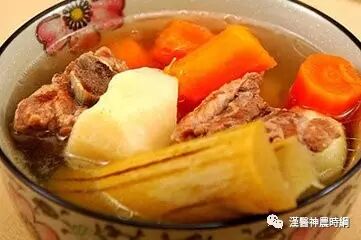 3、把适量清水煮沸,放入以上所有材料煮沸后改慢火煲3小时,加盐调味即可。