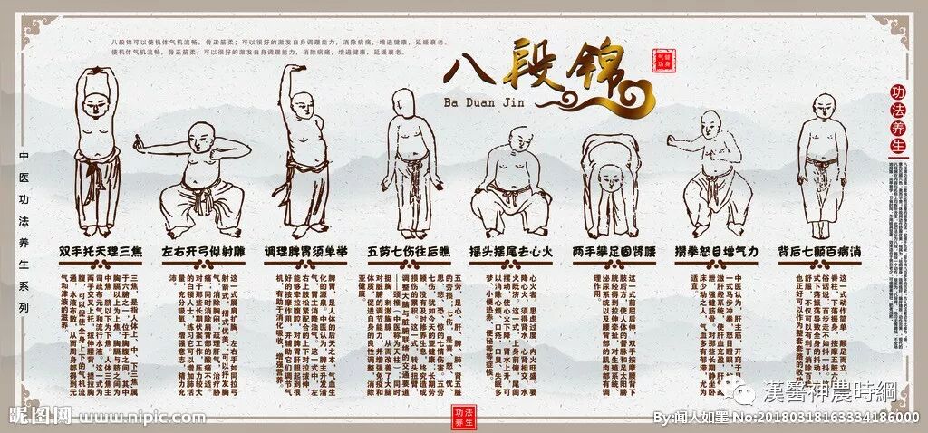 本动则生阳,阳以化生。健身,已成为人们生活的一部分。而“八段锦”作为一种古老而传统的健身方式,尤受人们青睐。國際藥膳營養學專家張正醫師说:八段锦是优秀的中国传统保健功法。古人把这套动作比喻为八匹绫罗绸缎那样美好珍贵,故名为"八段锦”。