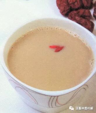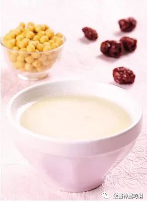 制法:黄豆浸泡6~16小时;将红枣洗净去核,枸杞洗净备用;将泡好的黄豆、红枣和枸杞一起放入豆浆机,加入适量水,打碎煮熟,再用豆浆滤网过滤后即可食用。