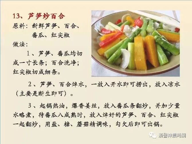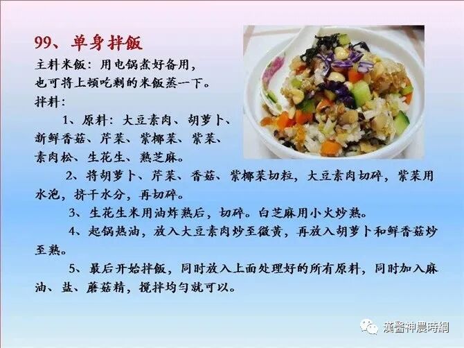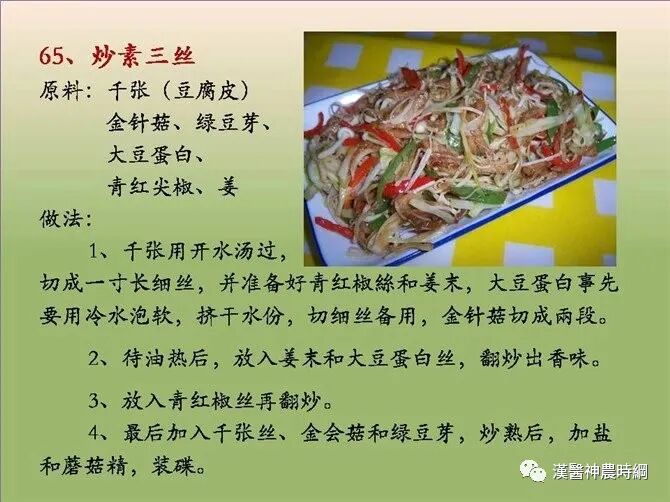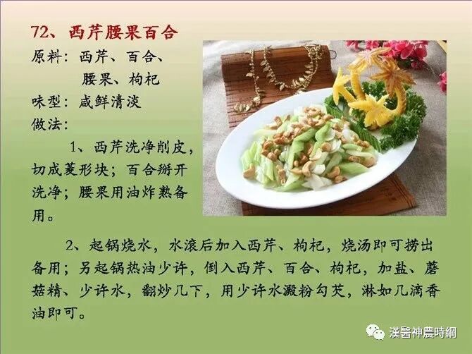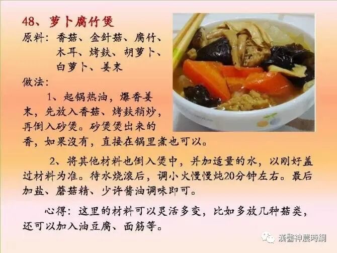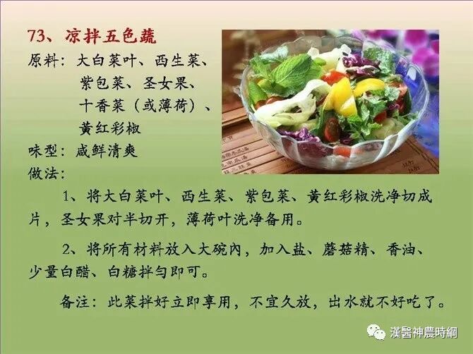 吃出健康来。素食的饱和脂肪含量佷低,可降低血压和胆固醇含量。德国做过一次研究,偶尔才吃肉的素食者,得心脏病的概率是一般人的三分之一,癌症的罹患率是一般人的一半。而且,素食还能起到食疗的功效。