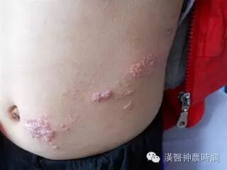疱疹分布多位于一侧,非列成带状,有时偶可超过躯干中线,这是由于神经末梢横过中线所致。胸、颈及面部三叉神经分布区为好发部位。通常三叉神经只累及一根分支。局部淋巴结常肿大疼痛。神经痛是本病的主要症状,急性期是由于神经节的炎症反应,晚期神经痛是由于神经节以及感觉神经的炎症后纤维化引起的。有时在疱疹出现前有剧烈的神经痛,此时常易误诊为急腹症或心绞痛等。老年体弱或淋巴瘤患者常有神经痛后遗症,有时可持续数月。