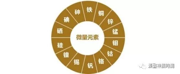 2、微量元素:钒、锰、铁、钴、铜、锌、硒、碘等。