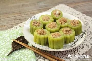 苦瓜:性寒,味苦。能除邪热,解疲乏,清心明目。苦瓜清热解毒,除烦止渴,价廉物美,炒、拌、盐渍均可,是大众餐桌上的常见之菜。明代李时珍称苦瓜“苦、寒、无毒”,具有“清邪热、解劳乏、清心明目,益气壮阳之功”。苦瓜有“植物胰岛素”之称。药理试验发现,苦瓜中所含的苦瓜皂甙,不仅有类似胰岛素的作用,而且还可刺激胰岛素释放,有非常明显的降血糖作用。用苦瓜皂甙制剂给Ⅱ型糖尿病病人口服治疗,其降血糖总有效率可达到78.3%。因此糖尿病人长期服用有明显的降血糖作用。