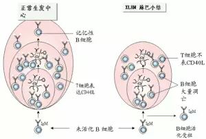 --占先天性免疫缺陷病的50%~70%。缺陷发生在B淋巴细胞祖细胞阶段,B淋巴细胞不能成熟,于是就不能生成抗体。所以该病的主要特征为免疫球蛋白水平的降低或缺失,这种免疫球蛋白的缺陷可以是各类免疫球蛋白均减少,也可以是某一类或亚类的免疫球蛋白减少。性连低丙种球蛋白血症(Bruton综合症)、选择性IgA、IgM和IgG亚类缺陷病等均属此类。