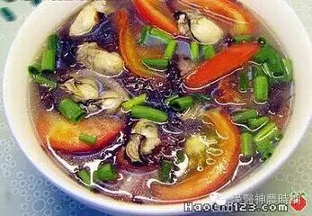 1、海带紫草牡蛎肉汤:海带50克,紫草10克,牡蛎肉250克。将海带用水发胀、洗净切细丝,放水中煮至熟软后,再放入紫草牡蛎肉同煮,食盐、油适量调味即可食用。