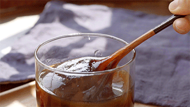 6、饮用时,可取1~2勺秋梨膏,用温开水冲调开即可。