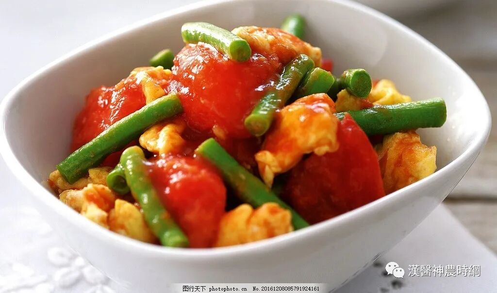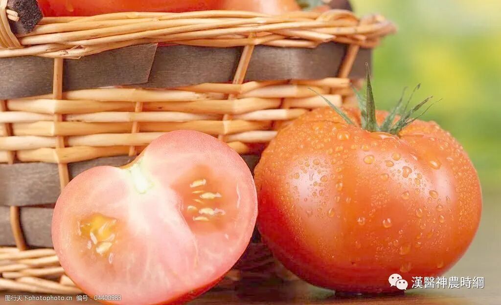 番茄性凉味甘酸,有清热生津、养阴凉血的功效,对发热烦渴、口干舌燥、牙龈出血、胃热口苦、虚火上升有较好治疗效果。