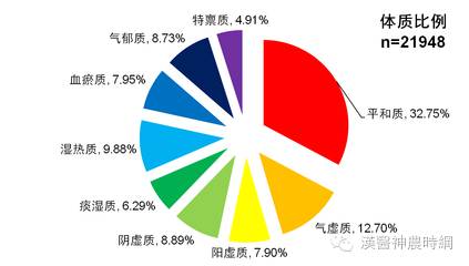 平和型较正常、气虚型常无力、阴虚型最怕热、阳虚型最怕冷、湿热型爱出油、气郁型爱失眠、痰湿型易肥胖、血瘀型易健忘、特禀型会过敏。