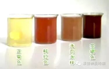 健康的尿液应该是淡黄透亮的,就像你沏的第一遍茶水。喝水多的时候,尿液也可能像白开水一样,是无色的;喝水少的时候,则像一种啤酒的黄色。这几种情况都是正常的。不正常的尿液包括以下几种:发亮的鲜黄色,说明尿液中含有黄疸,或者补充维生素B2,也就是核黄素过多;像洗肉水一样的鲜红色,说明尿中有红细胞,可能是肾脏外科疾病或肾炎,或者利福平等受抗结核药影响;酱油色,尿中有破了的红细胞,也可能是肾炎;白色,很少见,说明尿中有乳糜,源自丝虫病或肾、淋巴管堵塞。