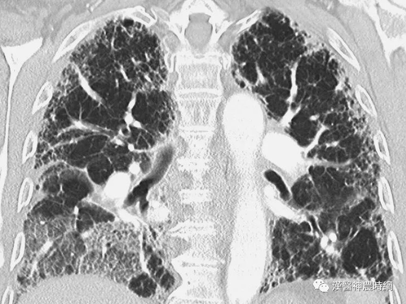 (3)从临床特点而言,肺间质纤维化病程日久,迁延不愈,“初病气结在经,久则血伤入络”,晚期呈蜂窝肺(网格状改变),甚至毁损肺,肺功能丧失殆尽。此恰似肺痿沉疴之肺叶萎弱不用,迁延反复,久治不愈之特点。