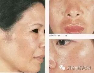 面部:中年以后皮肤干、长黄褐斑、眼睛易出现红血丝、面色晦暗