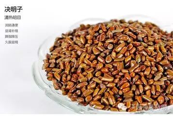 1、用于目赤肿痛、羞明多泪、青盲内障等症。目赤肿痛,羞明多泪等症,系肝火上扰,或风热上壅头目所致。决明子既能清泄肝胆郁火,又能疏散风热,为治目赤肿痛要药。风热者,常与蝉衣、菊花等同用;肝火者,常配龙胆草、黄芩、夏枯草等同用。